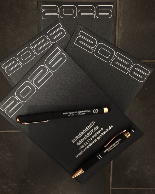 unsere neuen Buchkalender & Kugelschreiber 2 0 2 6 für unsere treuen Kunden